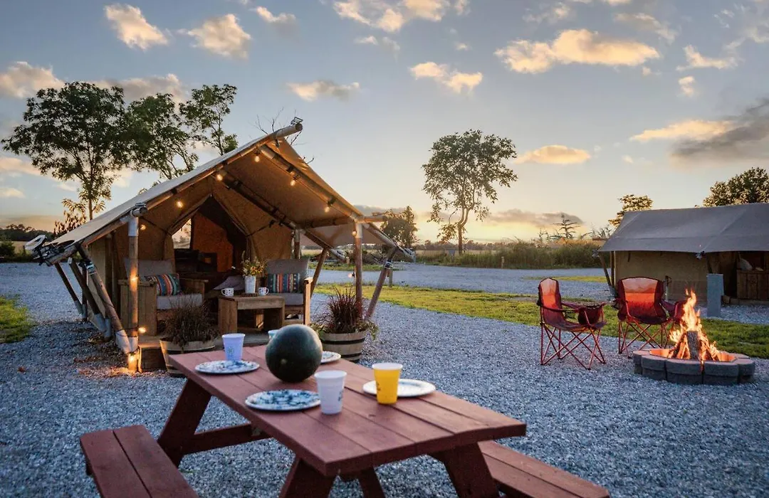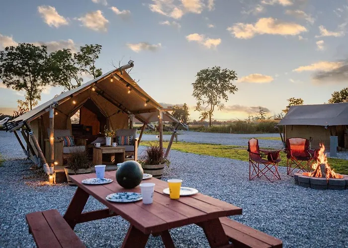 The 1-bedroom Roaring River Luxury Adventure Tent #16 is located 10 minutes by car from Beebe's Roaring River Waterslide, giving access to various tourist spots nearby.